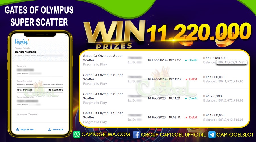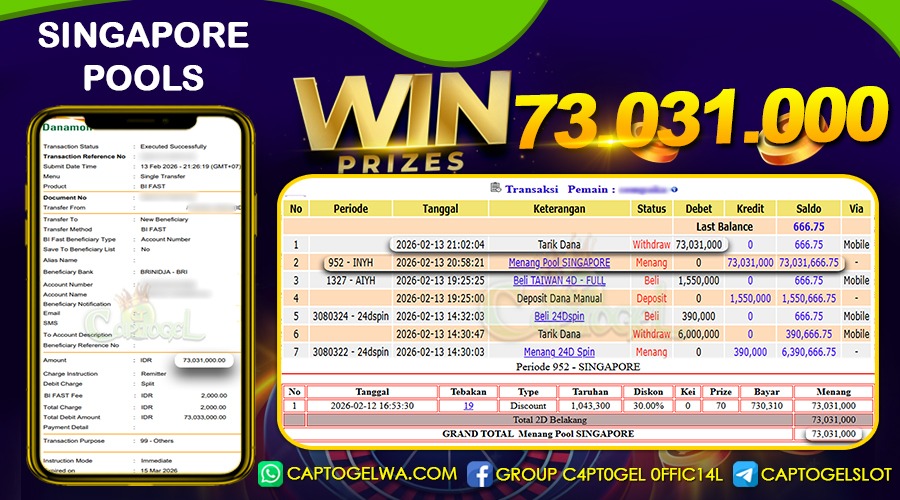 Update terkini bukti jackpot ⢠Testimoni member ⢠Bukti transaksi real dari platform CAPTOGEL.